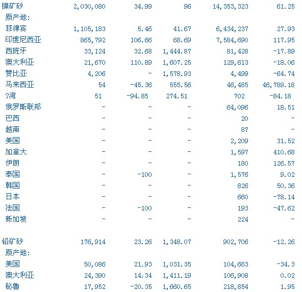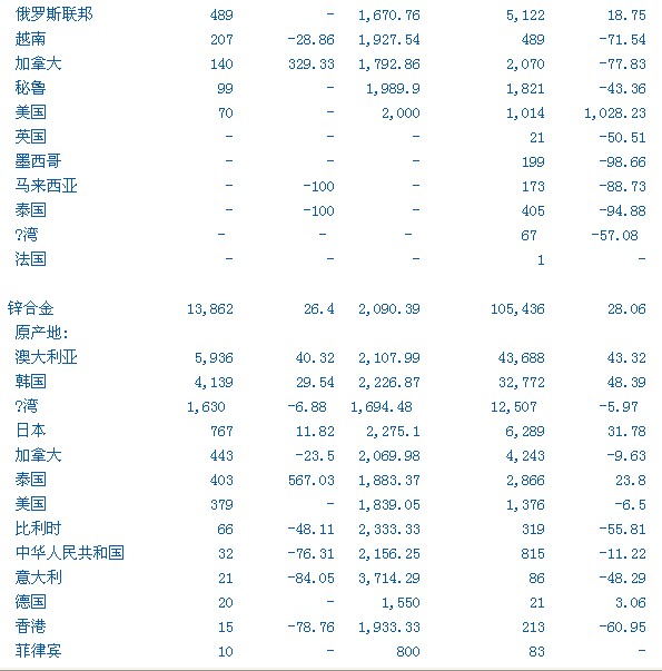 路透北京9月21日電---以下是中國(guó)海關(guān)公?的8月精煉鉛、鋅、錫和鎳等金屬進(jìn)出口分項(xiàng)數(shù)據(jù)一 覽表(單位均為噸)